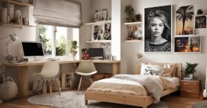 Kolorystyka i dekoracje odgrywają ważną rolę w optycznym powiększeniu przestrzeni. Jasne kolory, takie jak biel, pastele czy delikatne odcienie szarości, sprawiają, że pokój wydaje się większy i bardziej przestronny. Naklejki na ściany, kolorowe poduszki czy zasłony mogą dodać wnętrzu uroku i ciepła, jednocześnie nie przytłaczając go.